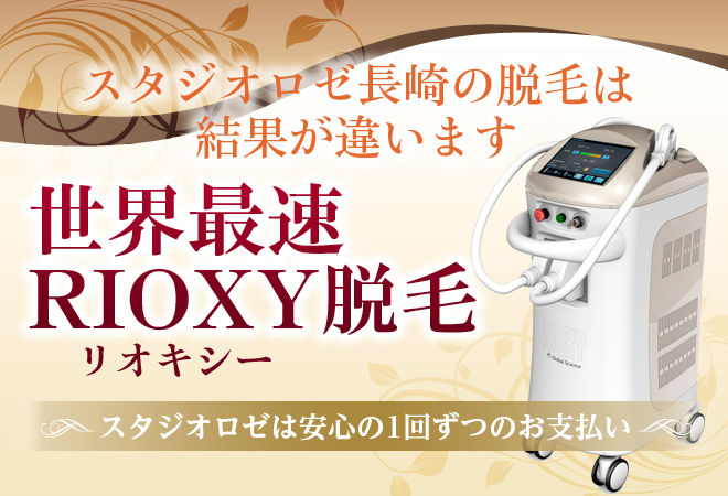 長崎市の鍛冶屋町にある「スタジオロゼ長崎」は、20年後も生えてこない脱毛が売りのサロンです。また、脱毛料金も1回ずつの支払いという特徴があります。20年後も生えてこない脱毛法は、二種類の脱毛機を使用することでできるようです。でも、20年後も生えてこないということは、料金もカナリ高いんじゃないか思ってしまいますが、1回の脱毛は手頃な料金で脱毛できます。脱毛メニューと料金は、・両ワキ 1,080円 ・両腕ヒジ上 2,160円 ・両腕ヒジ下(ヒジ・甲・指を含む) 2,160円 ・両脚ヒザ上 3,240円・背中 3,780円 ・胸(デコルテ下~アンダーバスト) 2,160円 ・お顔(全体・半額) など他にもあります。