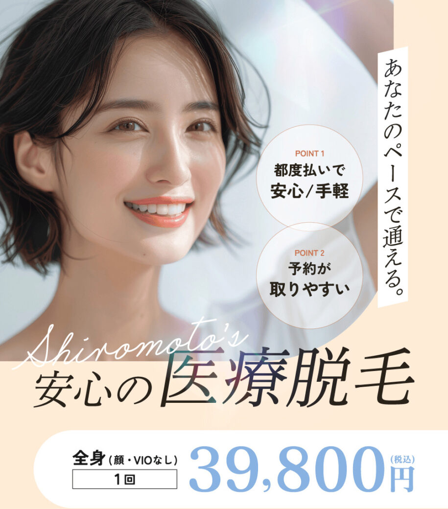 全身医療脱毛クイックプラン 3回 | 月々1,600円*1 / 総額 69,800円 |